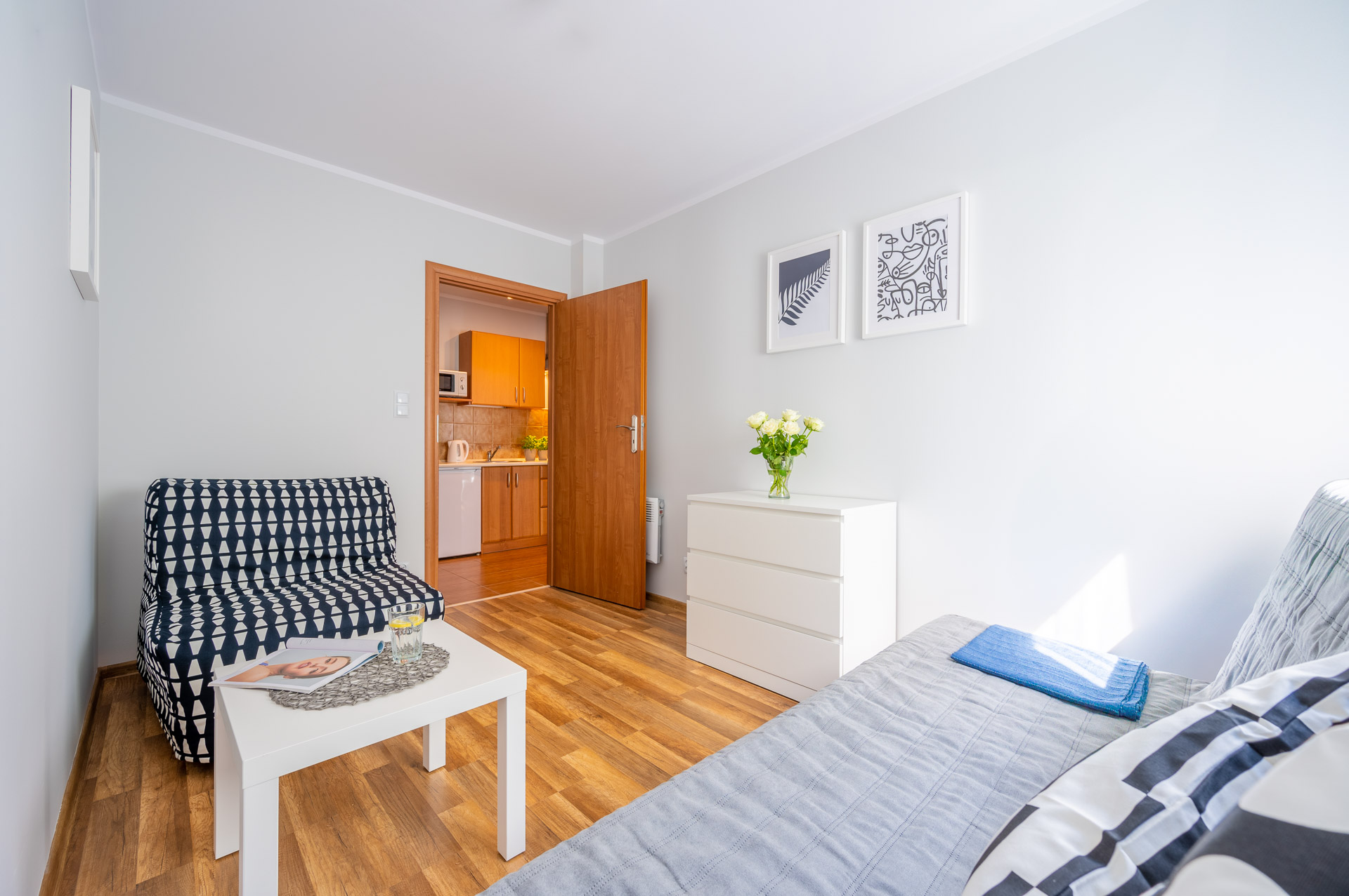 - pokoju 2-osobowego (2-osobowa rozkładana sofa) z aneksem kuchennym,